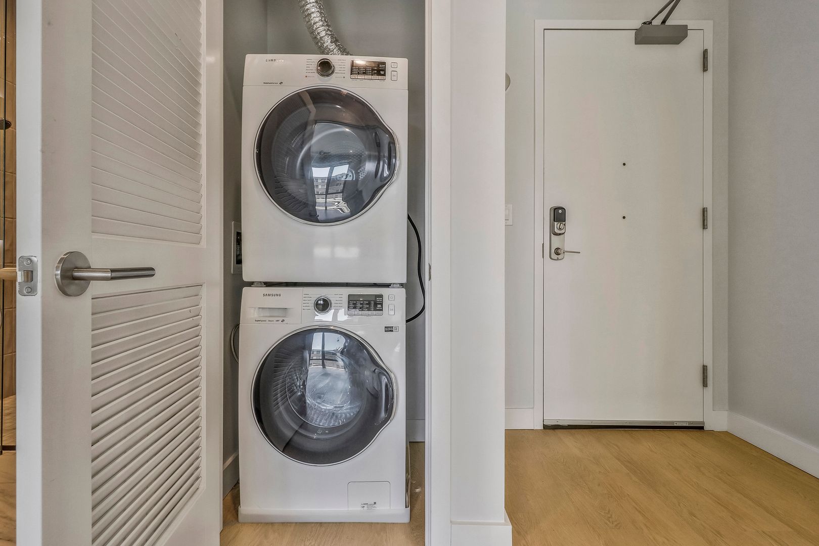 Vivre offers elevated finishes typically found in luxury condominiums. Interior features include floor-to-ceiling windows, wide-plank wood flooring, stainless steel appliances, quartz countertops, recessed lighting, full-size washer & dryer, fully controllable HVAC, custom window shades, fob-access electronic entry, full-size walk-in showers or soaking tubs, and private balconies in select homes. Kitchens feature custom woodgrain cabinetry, Bosch appliances with custom penalization, sleek exterior-venting hoods, under-cabinet lighting, and full-height designer backsplashes. Residents enjoy a concierge to assist with packages, a Wi-Fi-enabled penthouse-level interior lounge, and a rooftop deck with city views.